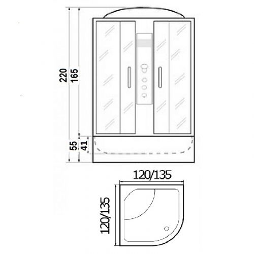 ~ крыша ~ верхний душ ~ верх.свет ~ динамик ~ вентилятор ~ цент.стойка стеклянная ~лунный свет ~ сенсор. пульт упр-я ~ радио ~ bluetooth ~ смеситель с переключ. режимов ~ 14 г/м форс. ~поясничный массажер ~ 4 г/м форс. д/поясничка ~ штанга ~ ручной душ 3-х позиц. ~ 2 ярус. полка ~ под. высокий с сидением со съем.экр. (Н=55 см) ~ сиденье ~ слив-перелив с гофтрубой