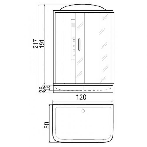 ~ крыша ~ верхний душ ~ верх.свет ~ динамик ~ вентилятор ~ цент.стойка ~ лунный свет ~ пульт упр. сенсорный ~ радио ~ смеситель с переключ. режимов ~ 3 г/м форс. ~ штанга ~ ручной душ 3-х позиц. ~ зеркало ~полочка ~ поддон прямоуг. выс.с/съем. экр.(Н=50см) ~ сиденье ~ сифон