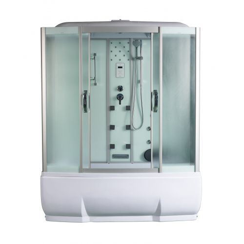 ~ крыша ~ верхний душ ~ верхн.свет ~ динамик ~ вентилятор ~центр/стойка зеркальная ~ лунный свет ~ пульт упр-я сенсорный ~ bluetooth ~ радио ~ смеситель с переключ. режимов ~ 11 г/м форс. на ц/ст. ~ набор воды ~поясничный. массажер ~ 6 г/м форс. на з/ст. ~ штанга ~ ручной душ 3-х позиц ~ зеркало ~ полка 2-х ярус. ~ подголовник ~ слив-перелив ~ поддон-ванна с/сид-ем с/съем.экр. (Н=50см)