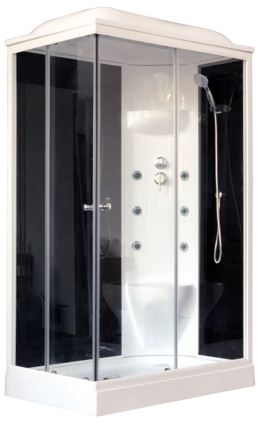Душевая кабина RB 8120HP7-BT – стильное решение для ванной комнаты. Черные задние стенки и прозрачные стекла дверей придадут элегантность и гармонично дополнят уникальный дизайн ванной комнаты. Определяя место для модели в комнате, обратите внимание, что кабина правосторонняя. Акриловый поддон с антискользящим покрытием имеет оптимальную для входа высоту. Движение дверей по направляющим обеспечивают подшипниковые ролики. Кабина оснащена гидромассажной системой состоящей из шести форсунок, верхний душ с эффектом дождя снимет усталость. Также в кабине есть встроенное сиденье и полочка для средств гигиены.