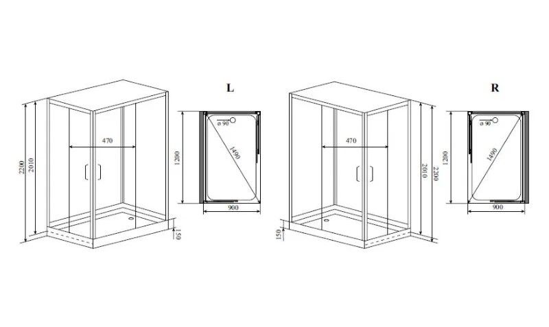 Душевая кабина Timo Premium H-515L /H-515R, 120 x 90 см, c крышей, средний поддон, стекла прозрачные, профиль хром, левый/правый