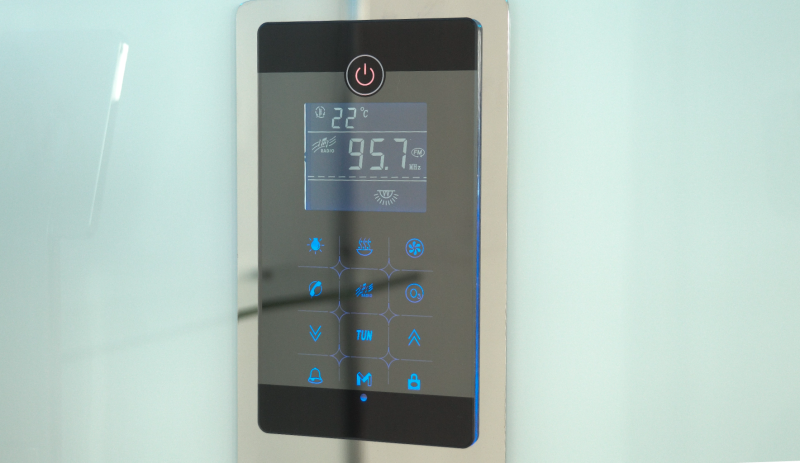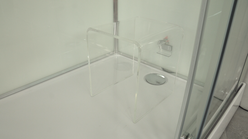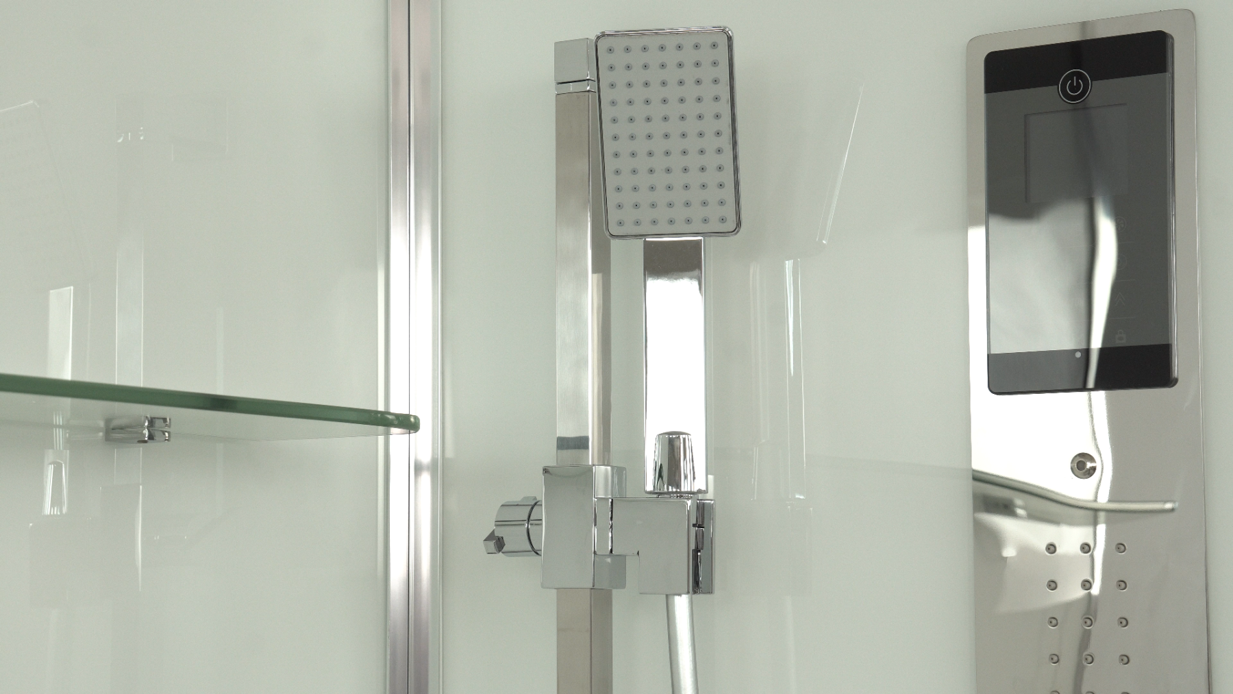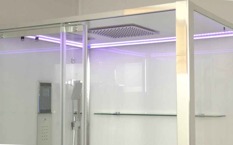 Комплектация: сенсорная панель управления, FM радио; турецкая баня(хаммам), ионизация, хромотерапия; гидромассаж спины; верхний душ; ручная лейка на регулируемой по высоте штанге; электр. вентиляция