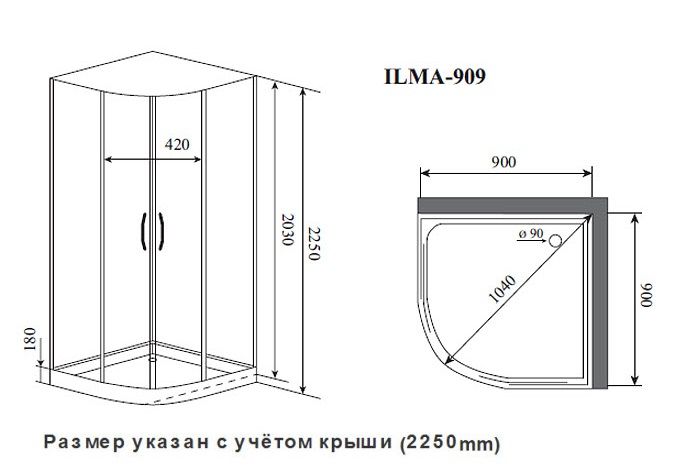 Размер: 90 x 90 x 222 см