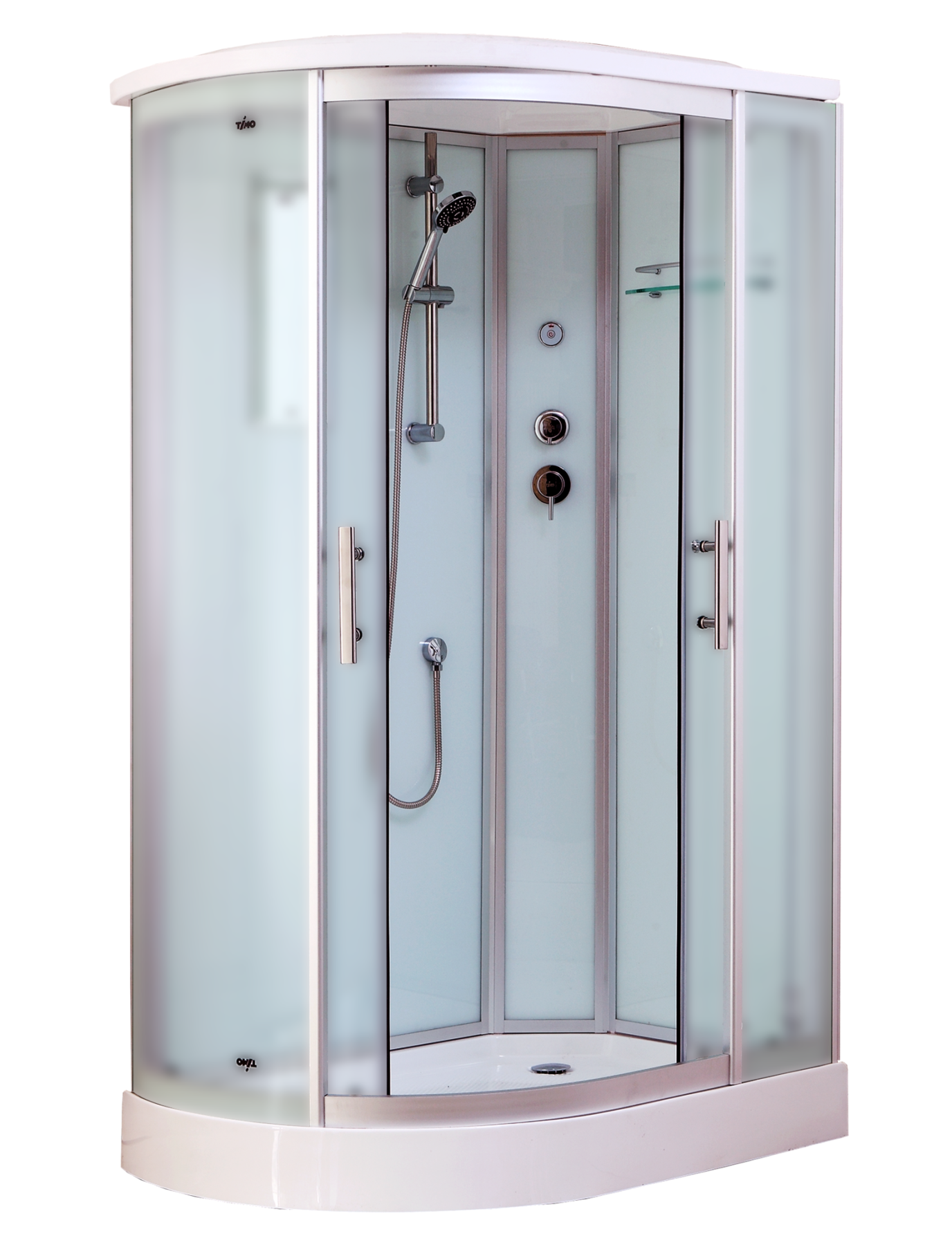Дверь кабины выполнена из прозрачного закаленного стекла толщиной 5 мм. Задняя стенка кабины изготовлена из матового стекла. Материал профиля – алюминий, покрытый хромом, что придает кабине элегантный вид и защищает от коррозии.