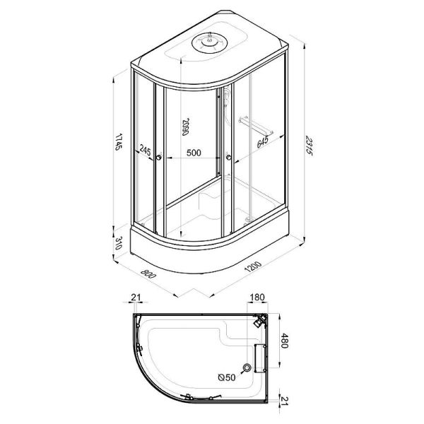Душевая кабина с крышей, левая/правая