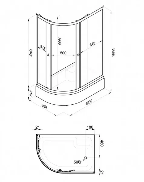 Высота с поддоном: 205.5 см