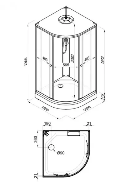 Душевая кабина с крышей