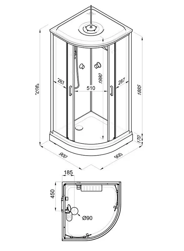 Размер: 90 x 90 x 219.5 см