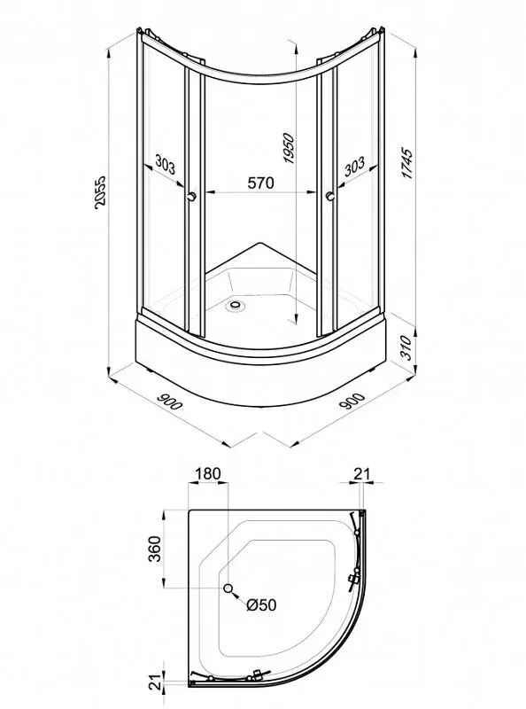 Высота с поддоном: 205.5 см