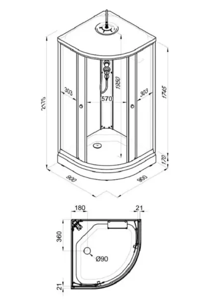 ДК Мозаика 90*90 А, 7 мест+сифон D90