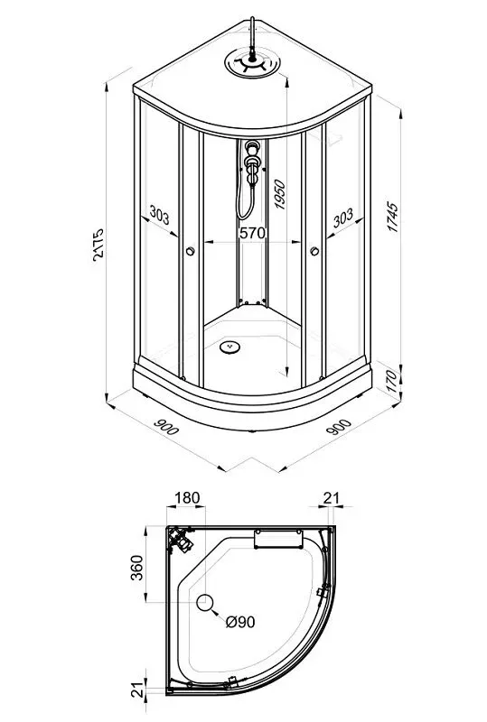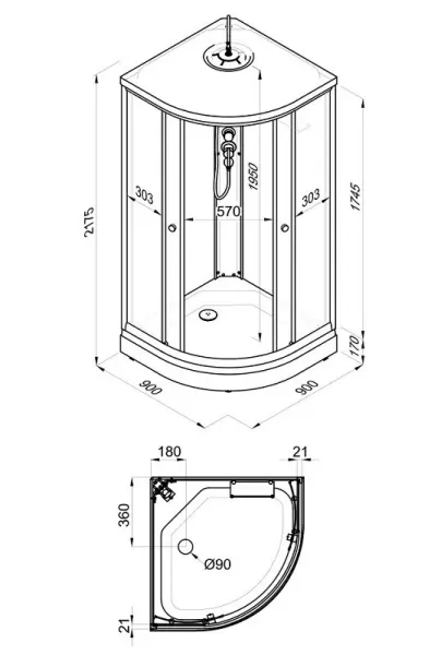 Размер: 90 x 90 x 217.5 см