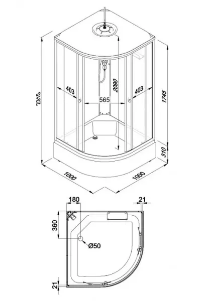 ДК Ультра 100*100 В, 7 мест+сифон D50