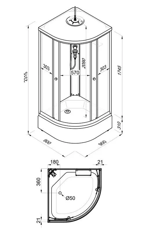 ДК Ультра 90*90 В, 7 мест+сифон D50