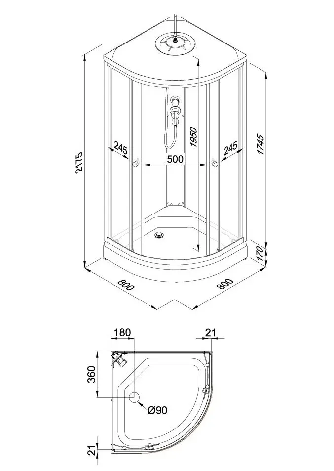 Размер: 80 x 80 x 217.5 см