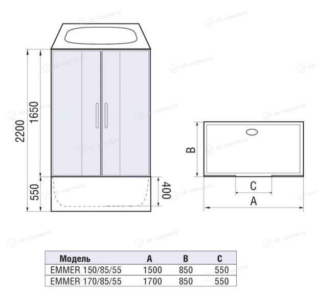 Душевая кабина WW500 EMMER 170/85/55-2 1700х850х2200 с поддоном купить
