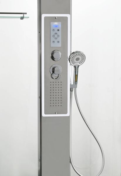 Эта душевая кабина сочетает в себе стиль, функциональность и современные технологии, идеально подходя для создания комфортной и практичной ванной комнаты.