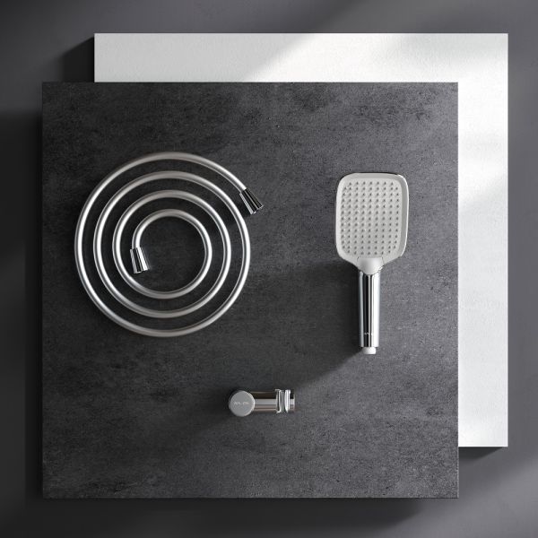 Невероятно легкая очистка душевых форсунок благодаря функции Rub&Clean. Набор дополнен регулируемым держателем для ручного душа. Шарнирное соединение защищает душевой шланг от перекручивания.