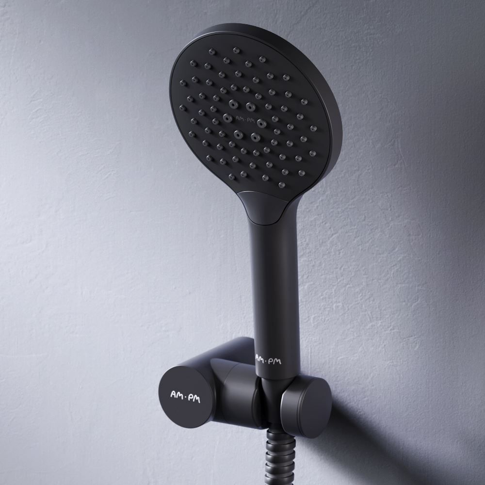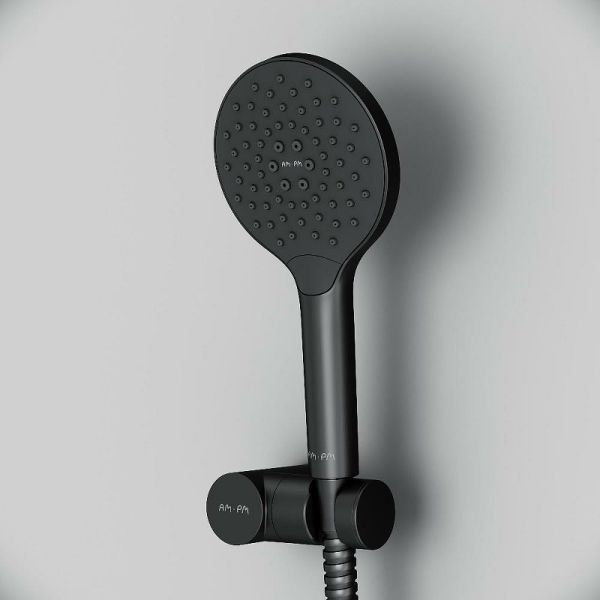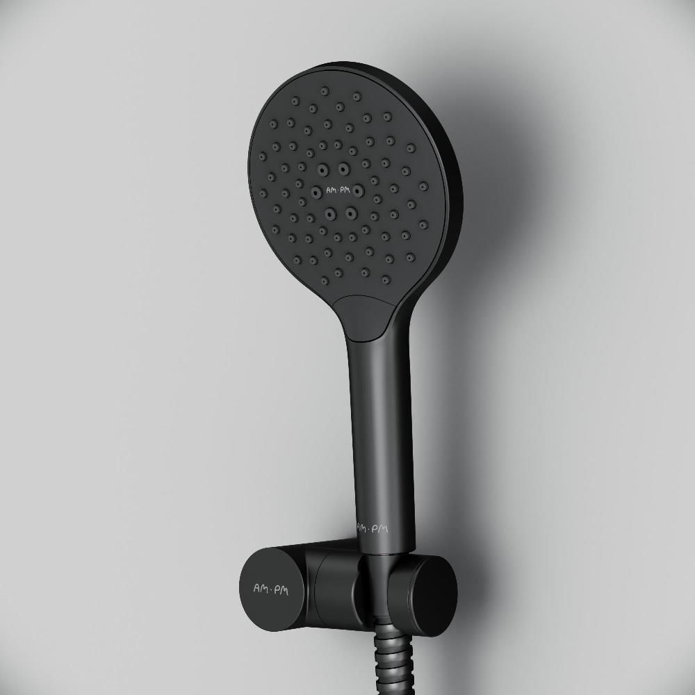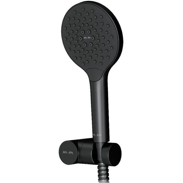 Душевая лейка Am.Pm Like F0118022Like F0118022, душевой набор: ручной душ 120мм, держатель ручного душа, душевой шланг, чёрный, шт.,функция Rub&Clean для легкой очистки душевых форсунок, функция Аir In для повышения эффективности и экономии воды, регулируемый держатель ручного душа, шарнирное соединение защищает душевой шланг от перекручивания.