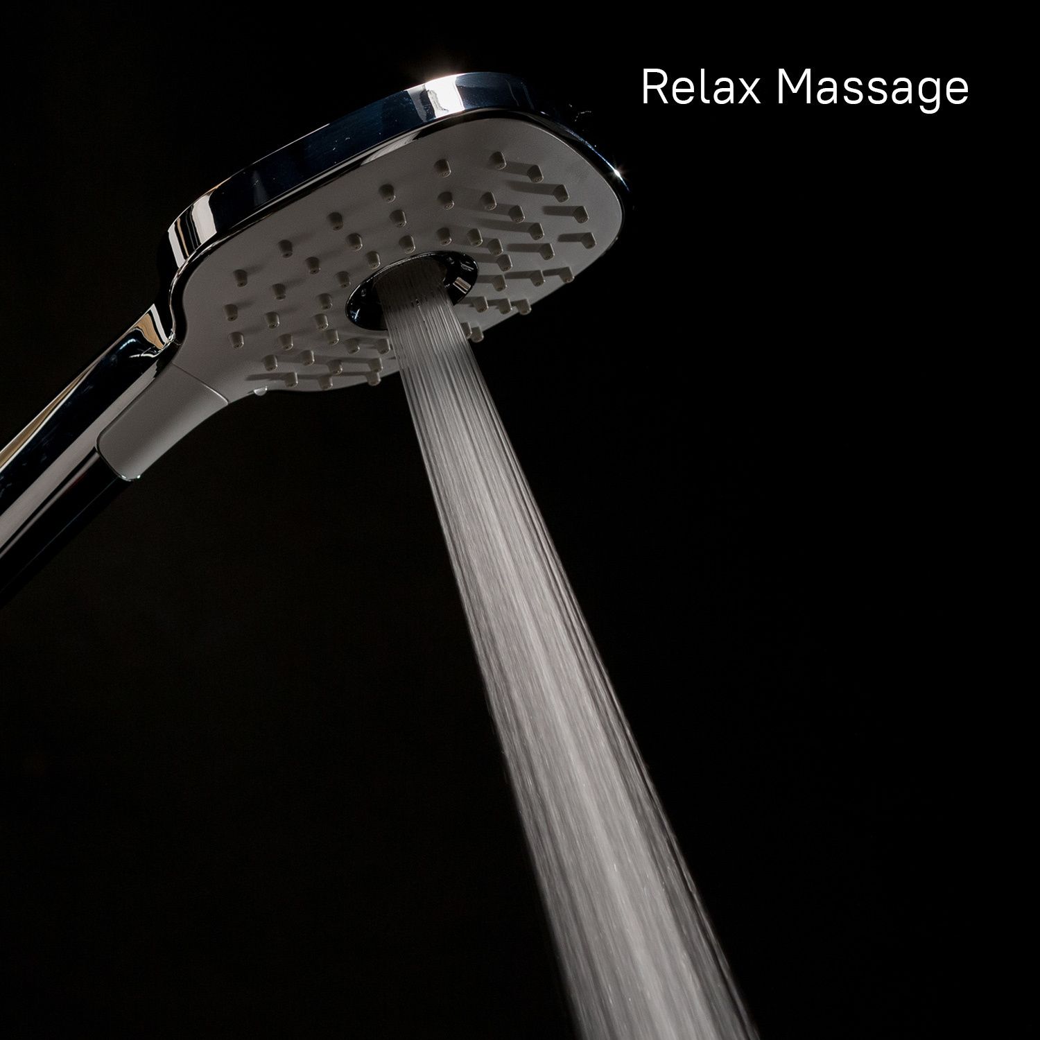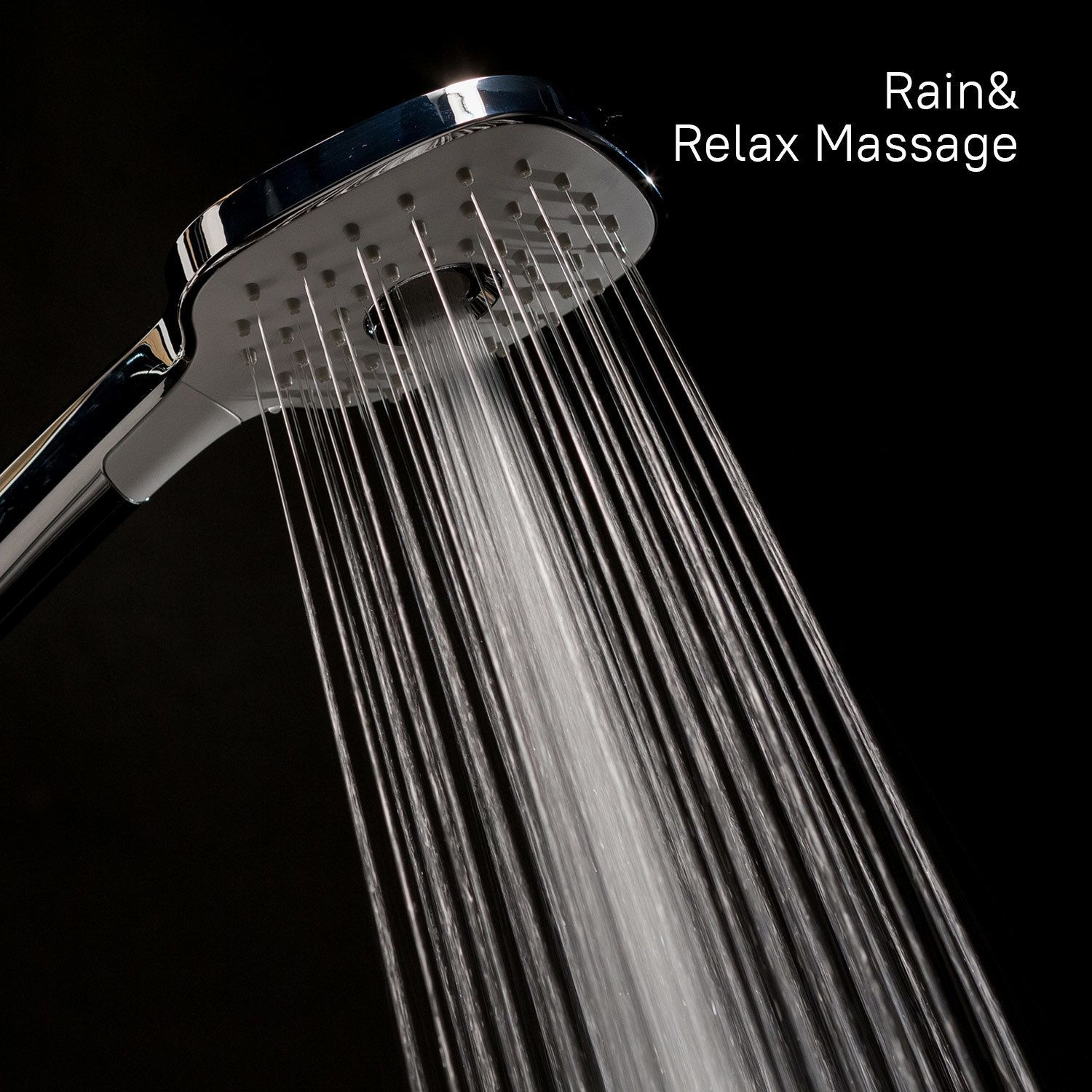Лейка для душа из ABS-пластика, 3 режима (Rain, Relax-Massage, Rain&Relax-Massage), кнопочное переключение режимов, встроенная мембрана из нержавеющей стали, размер 112х255 мм, цвет - белый/хром.