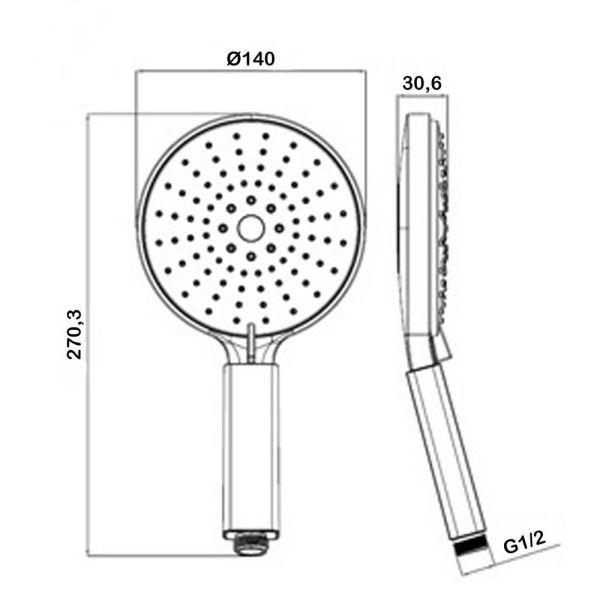 Ручной душ 3 режима,диаметр - 140 мм.Поток - 17,0 л/мин.Гипоаллергенный ABСпластик.Цвет: хром/белый.