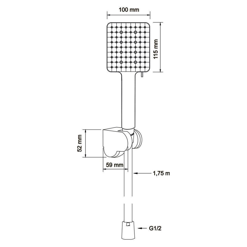 Душевой наборЛейка 100х115мм.6 режимов.Форсунки из силикона с функцией самоочистки.Гипоаллергенный пластик.Многопозиционный кронштейн.Шланг PVC 1,75 м.Цвет: черный.