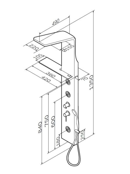 - 3 регулируемых гидромассажных форсунки 75 мм
