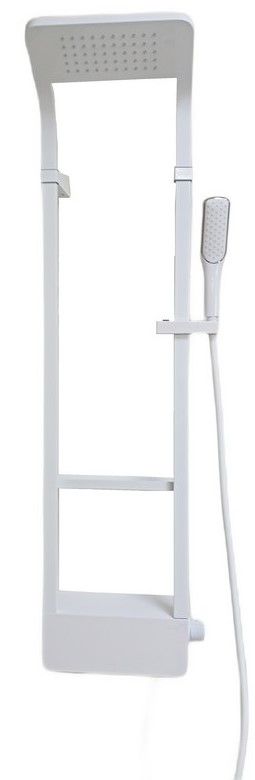 - Комплектация: душевая панель с верхним душем, душевая лейка, смеситель, шланг для душа, полочка, крепеж, инструкция