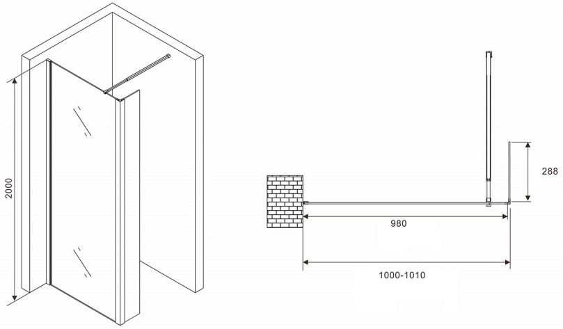 Душевая перегородка ABBER Immer Offen AG66100B 100см чёрный купить