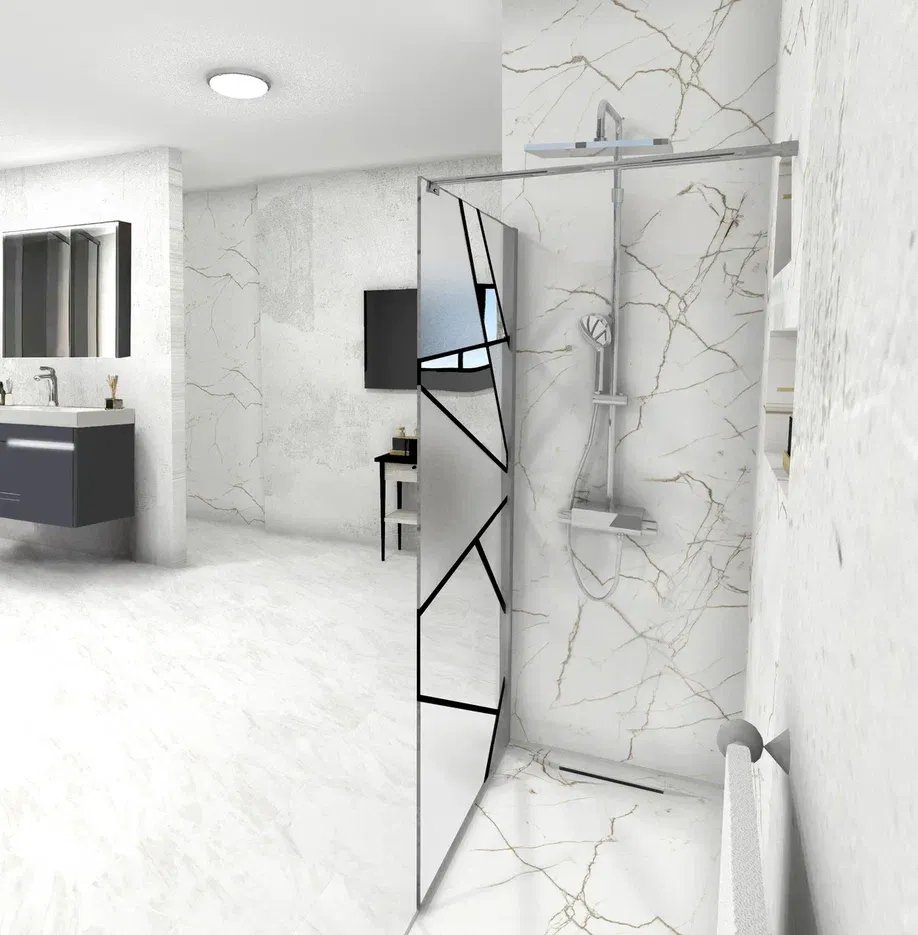 - закаленное стекло (8 мм), узор матовый с прозрачным