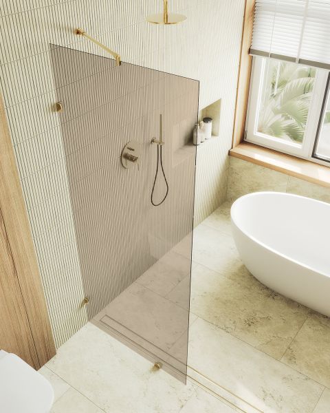 Стеклянная душевая перегородка "Коннектор стена-стекло" - это стильное и современное решение для организации пространства в вашей ванной комнате. Эта перегородка изготовлена из высококачественного закаленного стекла толщиной 8 мм, что обеспечивает прочность и долговечность конструкции. Одним из главных преимуществ этой перегородки являются коннекторы, которые надежно фиксируются и обеспечивают безопасность при принятии душа. Закаленное стекло , цвет бронза , толщина 8 мм , 1950*790-1 шт.