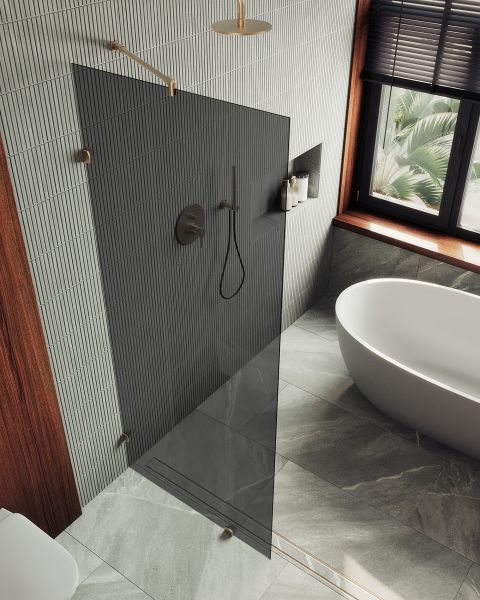 Стеклянная душевая перегородка "Коннектор стена-стекло" - это стильное и современное решение для организации пространства в вашей ванной комнате. Эта перегородка изготовлена из высококачественного закаленного стекла толщиной 8 мм, что обеспечивает прочность и долговечность конструкции. Одним из главных преимуществ этой перегородки являются коннекторы, которые надежно фиксируются и обеспечивают безопасность при принятии душа. Закаленное стекло , цвет графит , толщина 8 мм , 1950*790-1 шт.