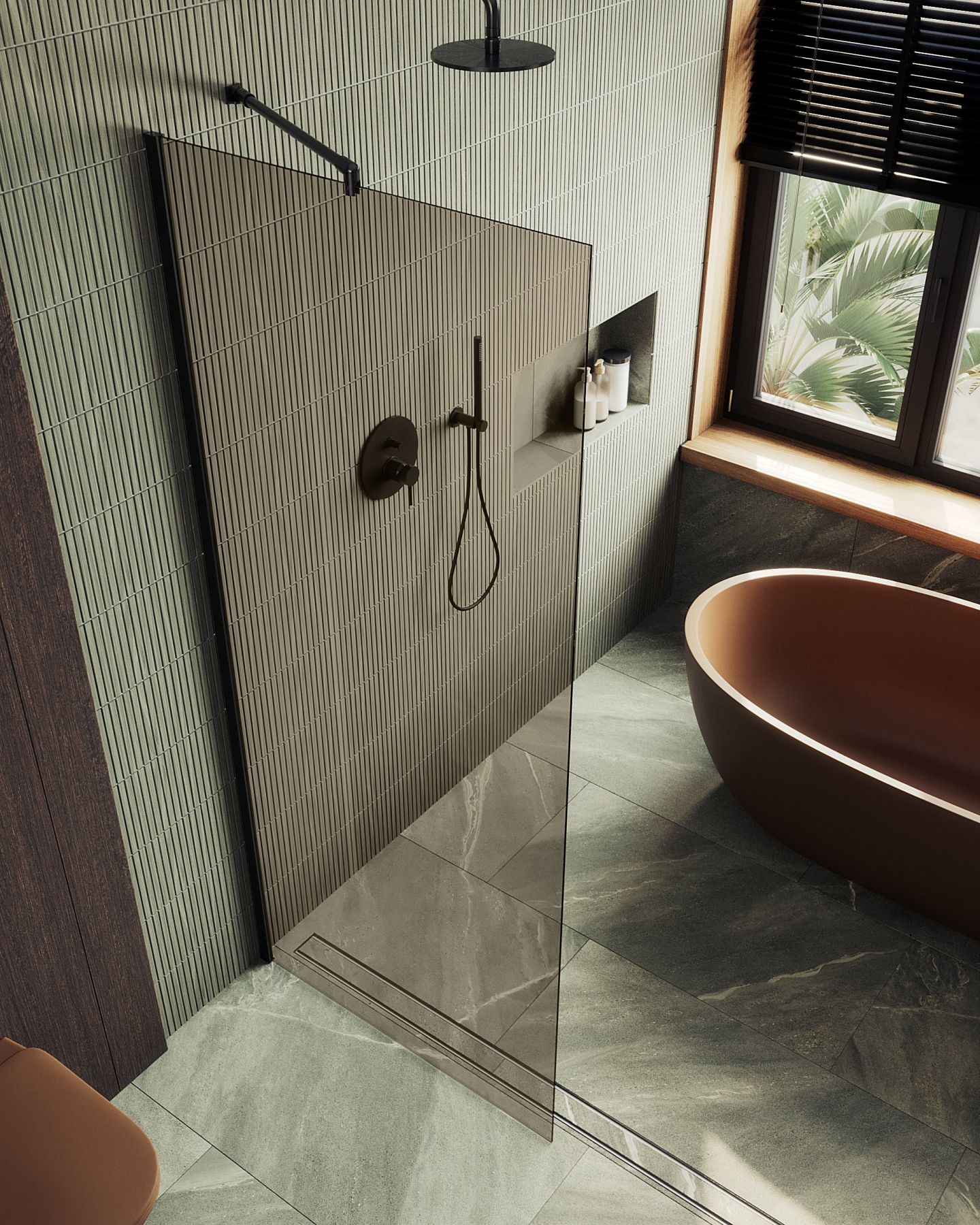 Стеклянная душевая перегородка в профиле - стильный и функциональный элемент, предназначенный для разделения пространства в ванной комнате. Перегородка изготовлена из закаленного стекла, обеспечивающего безопасность и долговечность. Профиль из анодированного аллюминия добавляет конструкции прочности и устойчивости. Благодаря разнообразию размеров и дизайнов, стеклянная душевая перегородка идеально впишется в любой интерьер. Закаленное стекло , цвет бронза , толщина 8 мм , 1950*790-1 шт.