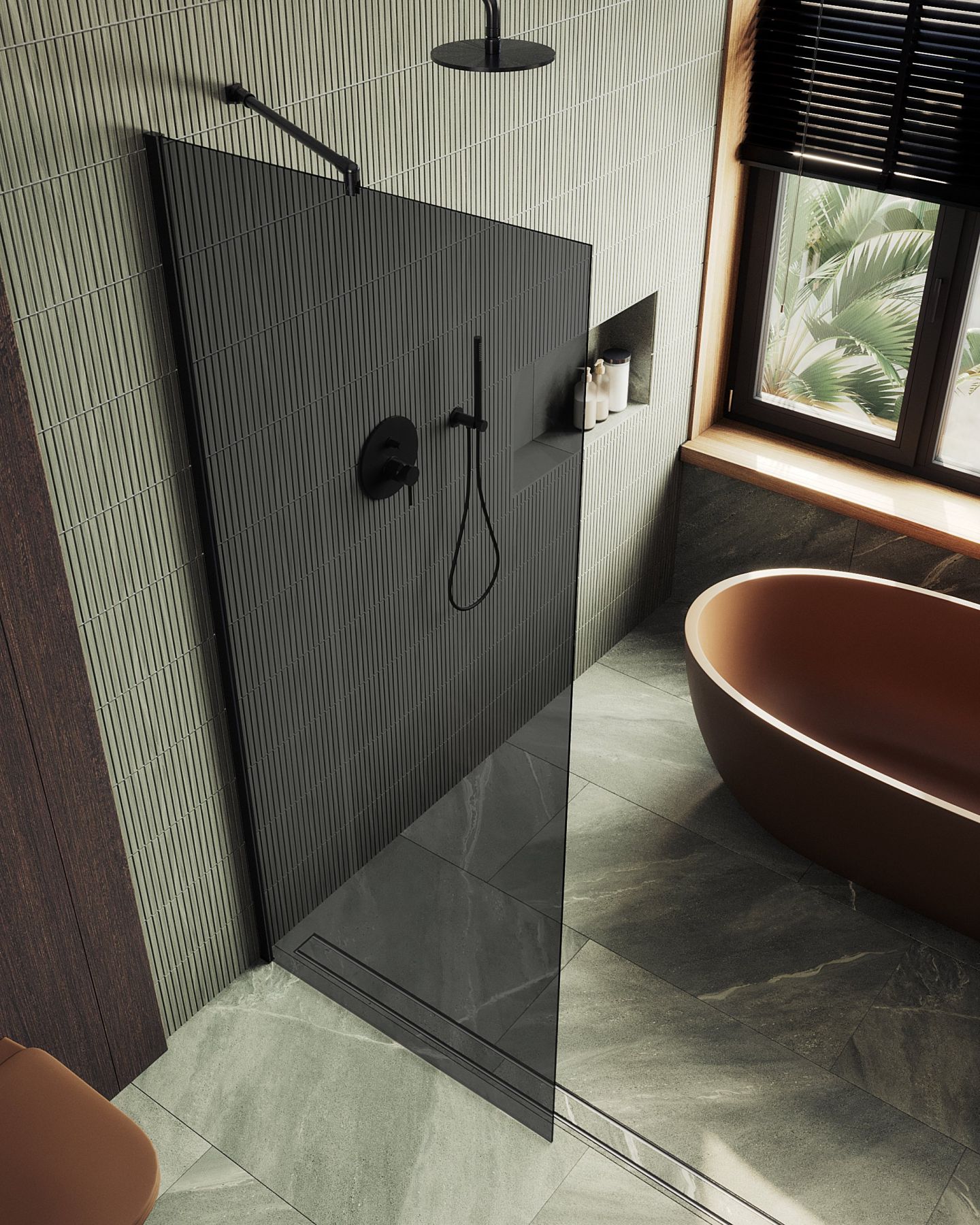 Стеклянная душевая перегородка в профиле - стильный и функциональный элемент, предназначенный для разделения пространства в ванной комнате. Перегородка изготовлена из закаленного стекла, обеспечивающего безопасность и долговечность. Профиль из анодированного аллюминия добавляет конструкции прочности и устойчивости. Благодаря разнообразию размеров и дизайнов, стеклянная душевая перегородка идеально впишется в любой интерьер. Закаленное стекло , цвет графит , толщина 8 мм , 1950*790-1 шт.