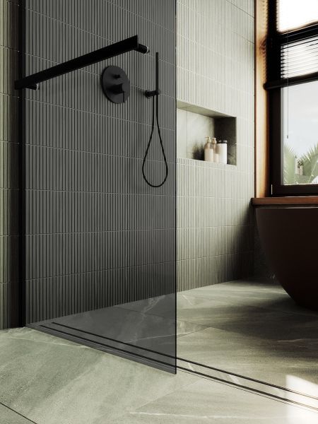 Душевая перегородка в профиле с полотенцесушителем представляет собой компактное и функциональное решение для разделения пространства в ванной комнате . Она изготовлена из закаленного стекла,анодированного алюминиевого профиля, что обеспечивает прочность и долговечность конструкции. Закаленное стекло , цвет графит , толщина 8 мм , 1950*790-1 шт.