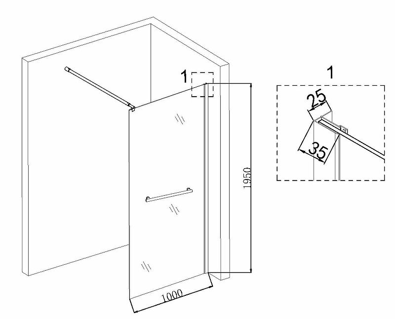 Исполнение полотна перегородки: прозрачное закаленное стекло, толщиной 6 мм.
