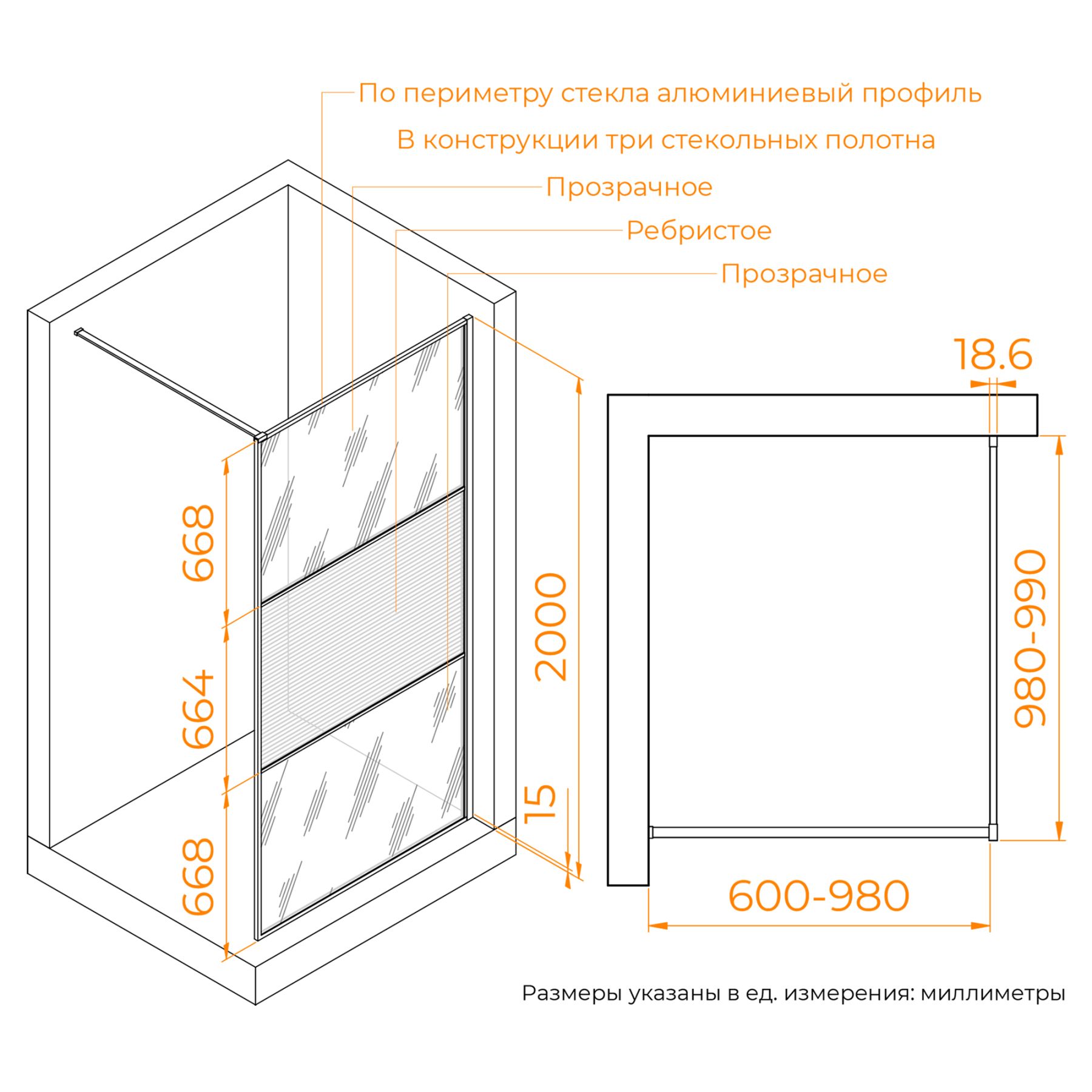 Главное преимущество данной модели — минимальная упаковка в виде чемоданчика с ручкой. Это позволяет легко и удобно транспортировать душевую перегородку!Душевая перегородка состоит из 3-х стекольных полотен (8мм), которые обрамлены изящным анодированным алюминиевым профилем!Штанга из стали S304, крепится к стене, она обеспечивает стабильность душевого ограждения. Длина стальной штанги 1000 мм, при этом ее всегда можно укоротить путем обычной подрезки.В конструктив модели возможно добавить тканевую водонепроницаемую шторку, при этом варианте использовать Штангу - кронштейна как карниз.Модели представлены в трендовых цветовых решениях профиля: