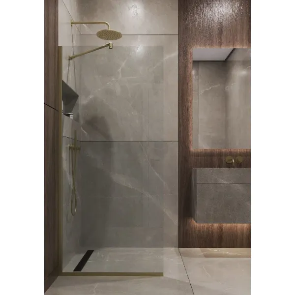 Душевая стенка Timo T14, 120 х 195 см, со свободным входом, стекло прозрачное, профиль золотоСтеклянная душевая перегородка Timo с профилем является элегантным и практичным решением для зонирования ванной комнаты. Изготовленная из закаленного стекла, она гарантирует безопасность и долговечность. Профиль из анодированного алюминия придаёт конструкции дополнительную прочность и устойчивость. Благодаря широкому выбору размеров и дизайнов, стеклянная душевая перегородка гармонично впишется в любое оформление интерьера.