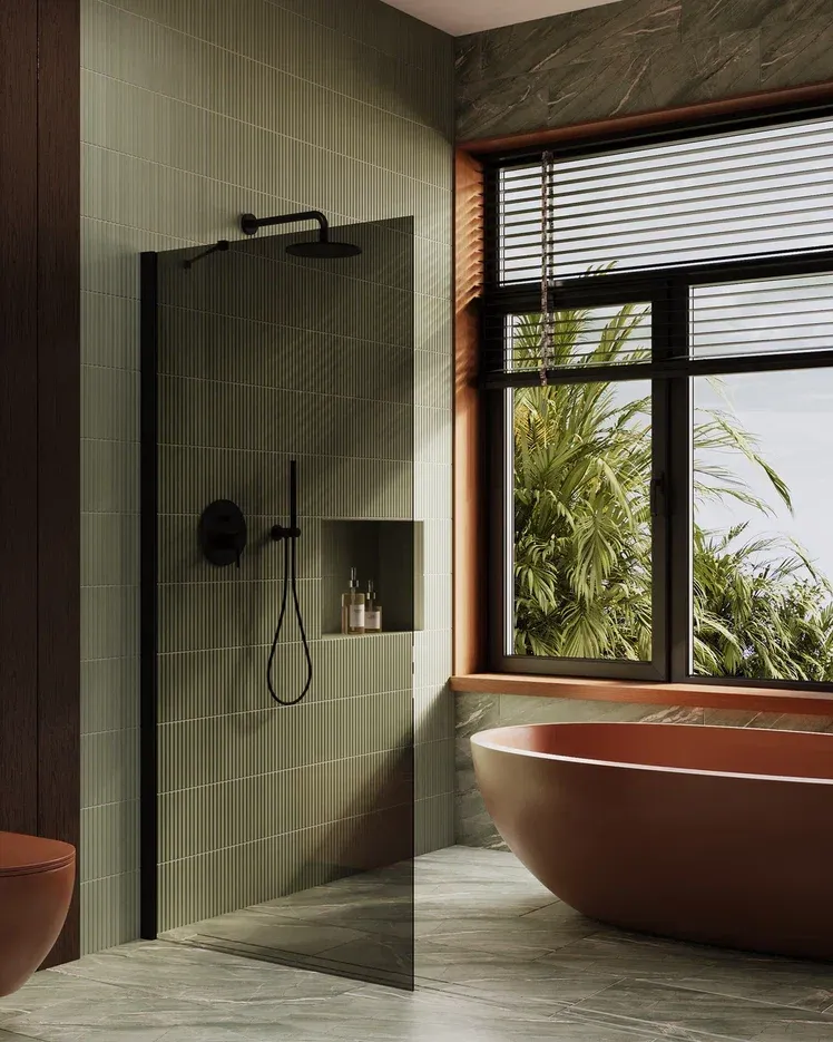 Душевая перегородка в профиле by Deonria P-195-89–8-T-B 89см чёрный/прозрачный купить