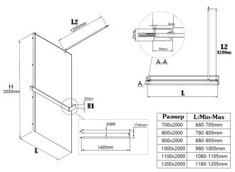 Душевая перегородка Vincea Walk-In VSW-1HR120CGB, 1200*2000, черный, стекло тонированное купить