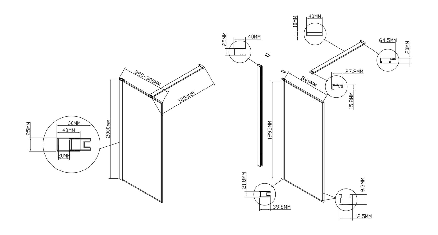 Душевая перегородка Vincea Walk-In HS VSW-1HS900CLB, 900*2000, черный матовый, стекло прозрачное купить