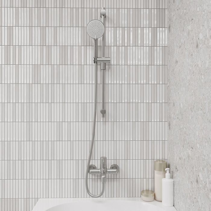 Душевая стойка Ray в стильном матовом хроме функциональна, практична и будет гармонично сочетаться с любыми дизайнерскими решениями. Может быть установлена и над ванной, и в зоне душевого ограждения. Держатель-слайдер легко перемещается вверх-вниз по стойке, позволяя отрегулировать положение лейки и высоту подачи воды – индивидуально для каждого члена семьи.