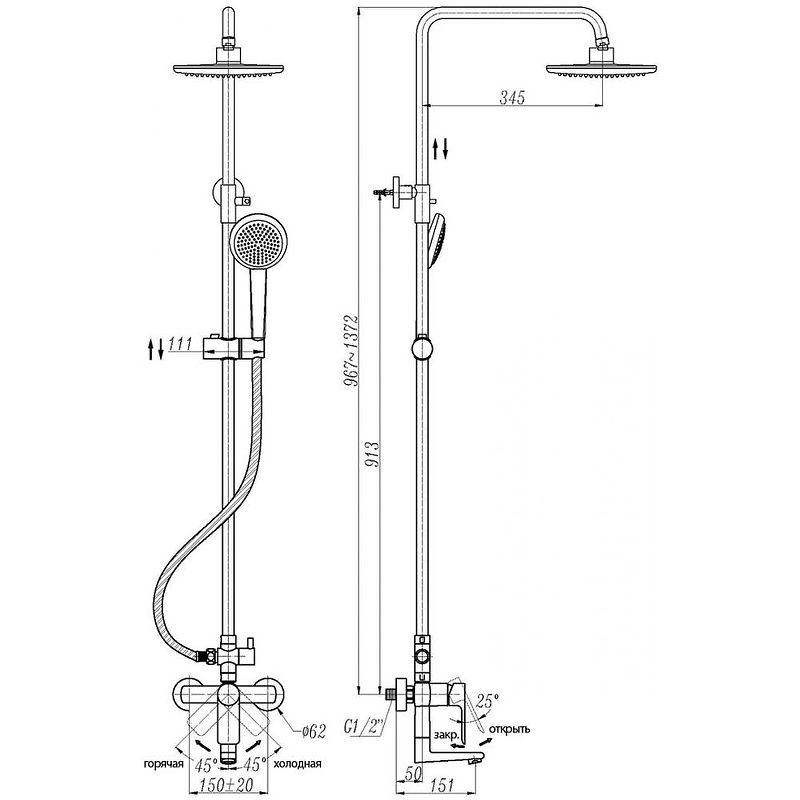 Регулировка по высоте: 967-1372 мм.