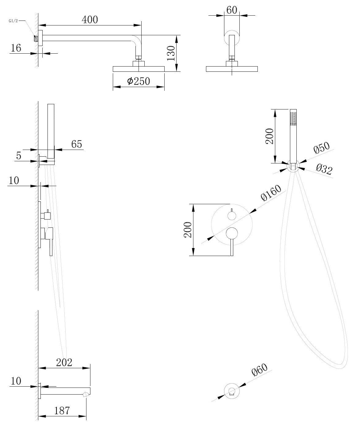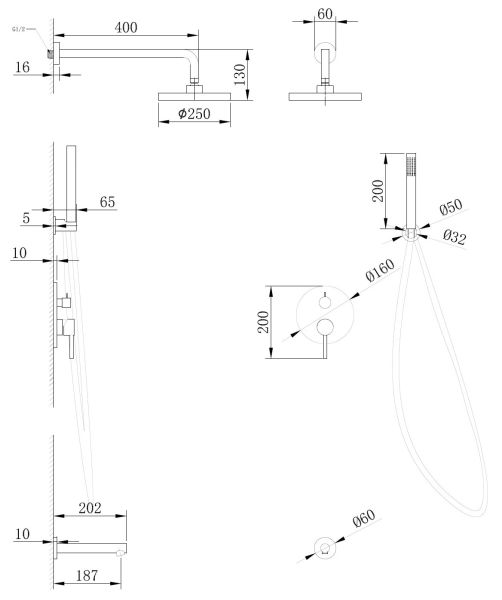 Размер верхнего душа, см:25