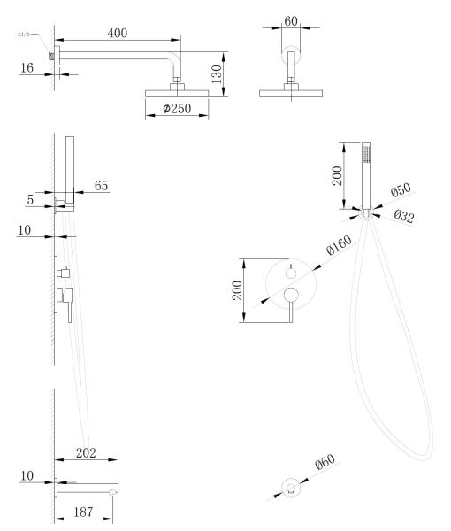 Размер верхнего душа, см:25