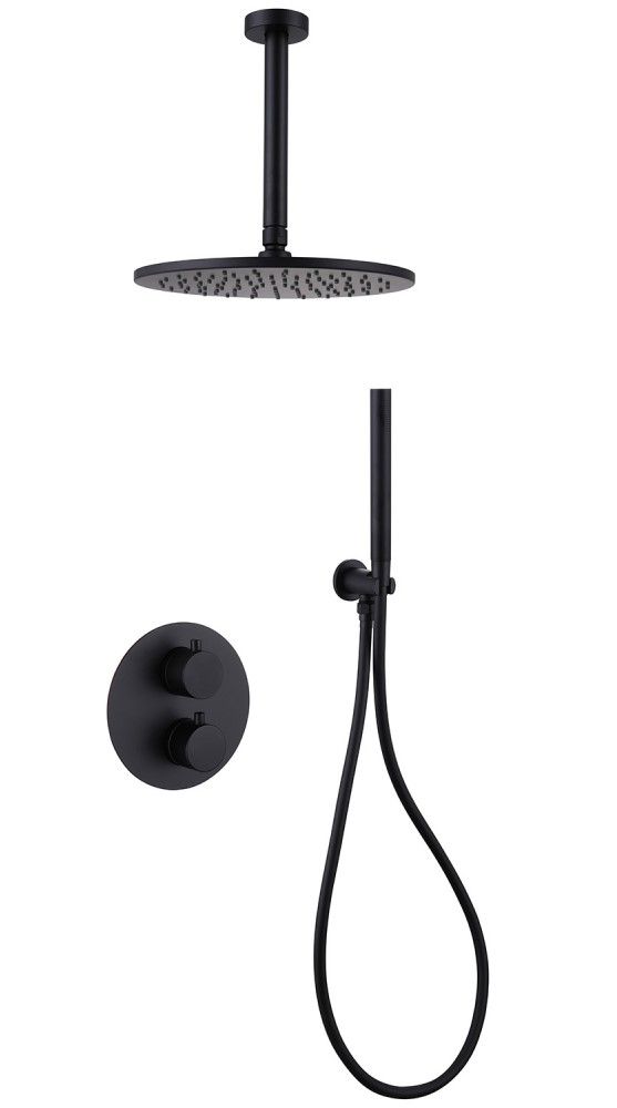 Душевой комплект ABBER роскошно дополнит вашу ванную комнату своим незаменимым функционалом. Душевые комплекты ABBER включают в себя все необходимое для создания идеального душевого пространства. Душевой комплект ABBER производится из высококачественных материалов, с отсутствием вредных примесей. Душевой комплект ABBER правильное решение в оснащении ванной комнаты.Душевая система скрытого монтажа без излива, черная матовая