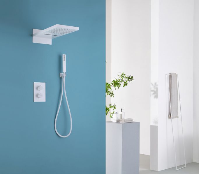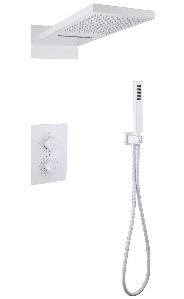 Душевой комплект ABBER отлично дополнит ванную комнату своим незаменимым функционалом. Душевые комплекты ABBER включают в себя все необходимое для создания идеального душевого пространства. Душевой комплект ABBER производится из высококачественных материалов, с отсутствием вредных примесей. Душевой комплект ABBER правильное решение в оснащении ванной комнаты.Душевая система скрытого монтажа без излива, термостат, белый