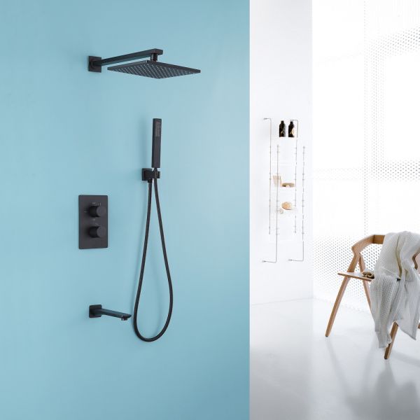 Душевая система ABBER Weiss Insel с термостатом чёрный матовый AF8050B купить