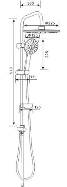 Душевая система с смесителем для душа будет прекрасно смотреться в интерьере современной ванной комнаты. Смеситель с фирменным картриджем делает лёгким управление напором и температурой воды. Корпус изделия изготовлен из высококачественной латуни, не подверженной коррозии от контакта с водой. Хромированное покрытие, за которым очень просто ухаживать мягкой салфеткой, обеспечивает блеск на долгие годы. Душевая система с регулируемым по наклону верхним душем (d 225 мм) и с пятирежимной лейкой (d 125 мм) доставят истинное удовольствие при принятии водных процедур (ручная лейка и верхний душ с защитой от известкового налёта). Для удобства предусмотрены мыльница с отверстием посередине для стока воды и надёжный гибкий шланг (1500 мм) с защитой от перекручивания (в оплётке из нержавеющей стали). Штанга 970 мм. с регулируемым по высоте держателем - возможность установки в старые отверстия.