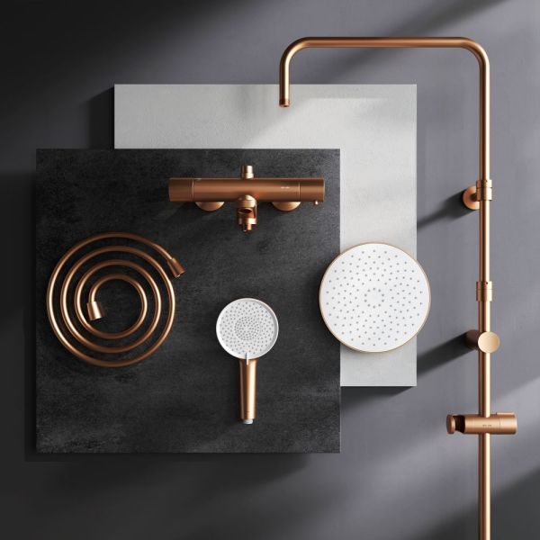 Настоящее произведение ювелирного искусства в вашей ванной комнате: нежный оттенок розового золота получается методом вакуумного напыления смеси 24-каратного золота, серебра и меди, в процессе которого микрочастицы сплава образуют стойкое соединений с латунной основой. Прочность эксклюзивного покрытия Everlast Gold сравнима с прочностью сапфира.Благодаря специально спроектированной эргономичной ручке вы можете управлять душевой системой даже с мыльными руками. Термостатический картридж с высокочувствительным термоэлементом и быстрой реакцией на изменения температуры или давления надежно защищает от ожога даже при внезапном отключении холодной воды.Телескопическая штанга с диапазоном регулировки 400 мм сделает процесс принятия душа удобным для людей любого роста. А благодаря увеличенным размерам тропического (220 мм) и ручного (120 мм) душей вы ощутите все преимущества использования дизайнерского продукта.Душевая система X-Joy была создана для того, чтобы радовать вас каждый день.