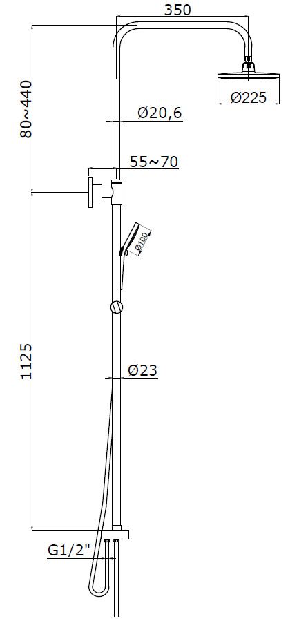 Размер верхнего душа, см:225